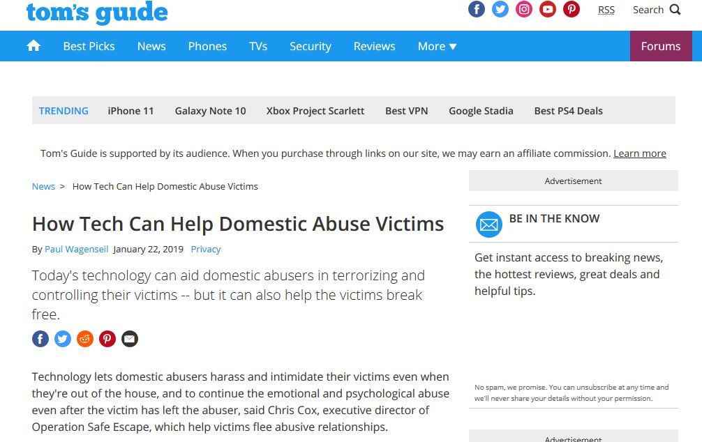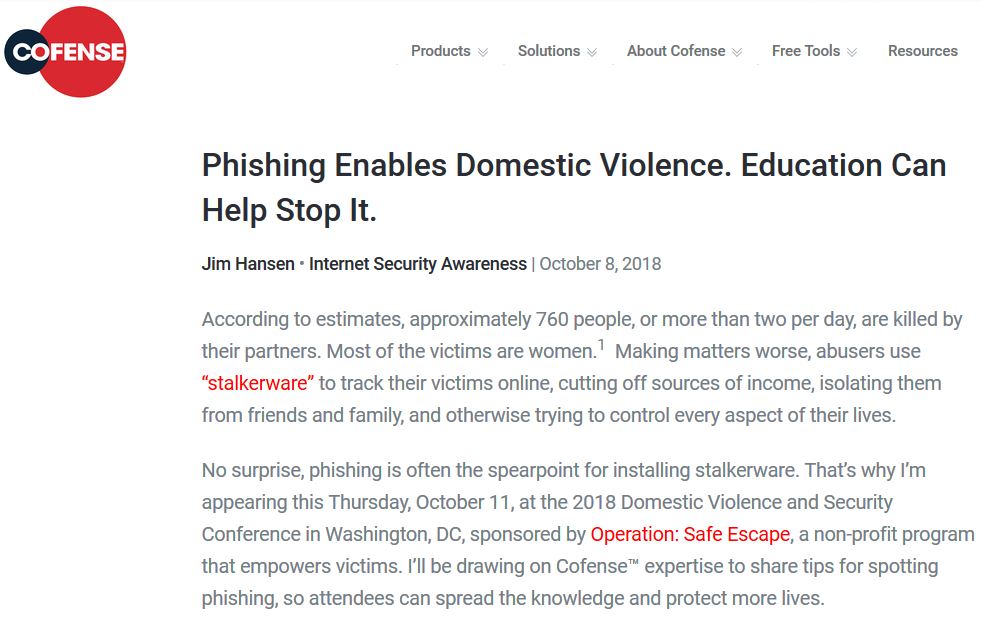 Finally, we work with partners, policymakers, and legal resources to help provide resources and address any training gaps related to the technical aspects of abuse, stalking, harassment, and other crimes. We work with experts all over the country to help them understand the challenges that victims of domestic violence (and increasingly often, human trafficking) face even after the abuser has been removed from the home. We’re in the process of capturing some of these lessons learned in a formal training program.